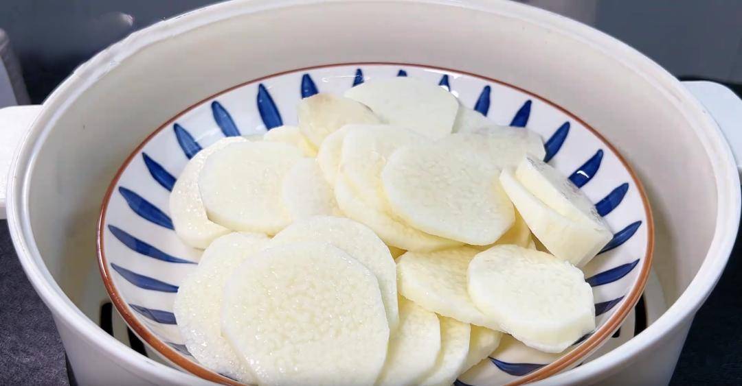 1、准备一根山药,去皮的时候,建议戴上手套,否则手会特别痒,然后用水稍微冲洗一下,再改刀切成薄片,尽量切得薄一些好牛优配,最后冷水上锅,盖上盖子,大火蒸15分钟。